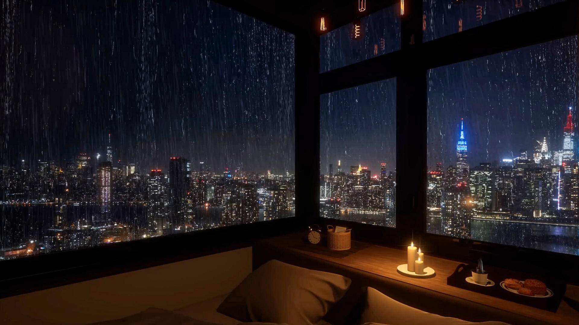 Звуки Дождя Ночного Города за Окном для Сна | Атмосфера Релакса