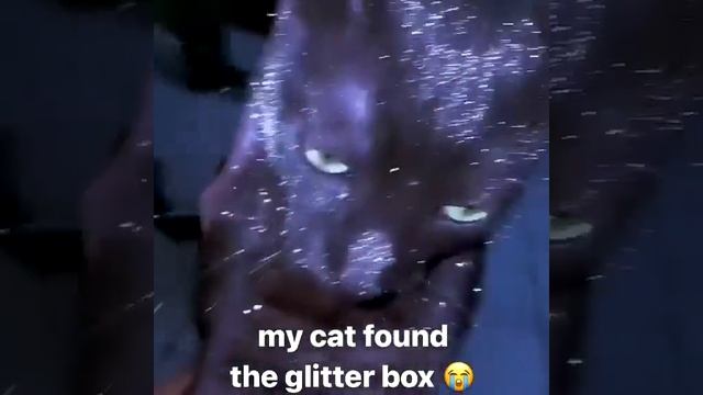 Кот нашёл коробку с блёстками