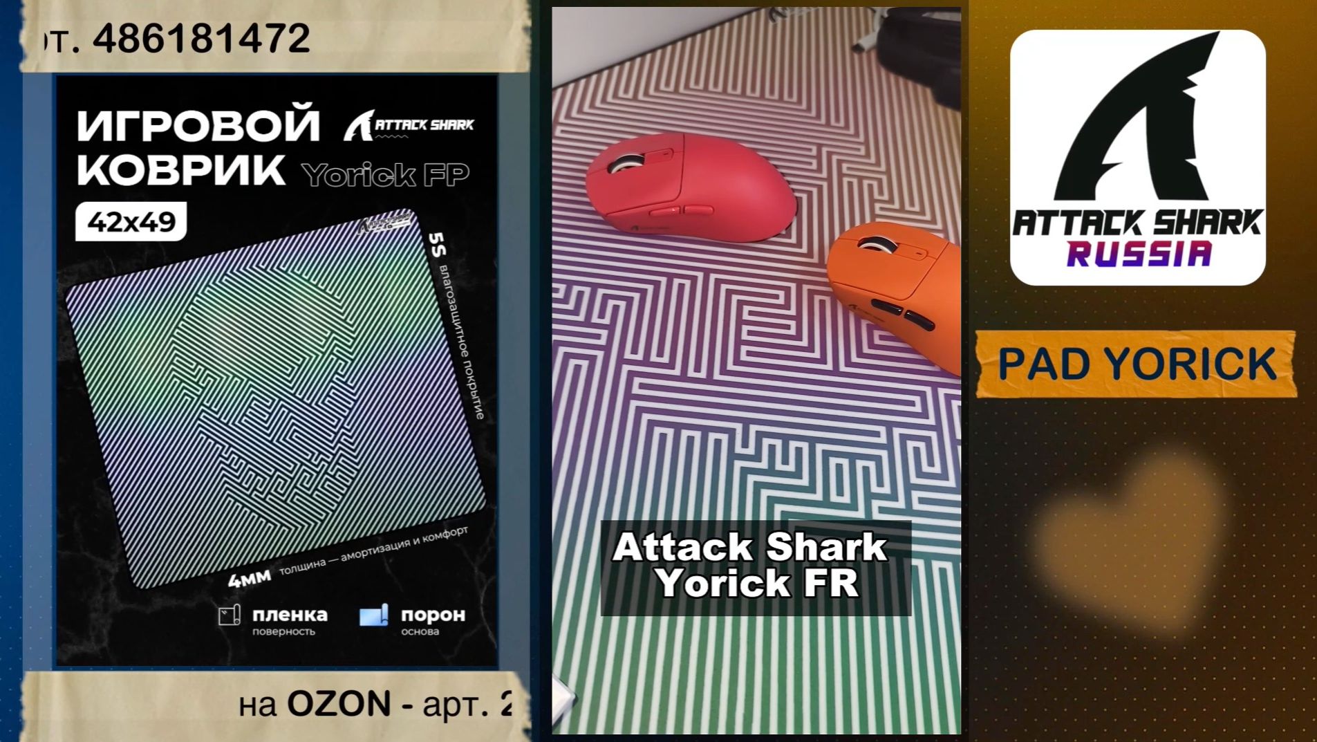 Плёночная поверхность Speed + Control, XSoft-основа 4 мм и эффектный голографический арт. ATTACK SHARK YORICK FP — игровой коврик формата XL с быстрым скольжением, точным позиционированием и комфортной амортизацией в каждом движении. ⚙️ Ключевые характеристики ATTACK SHARK YORICK FP: ✔️ Тип: игровой коврик для мыши ✔️ Размер: XL ✔️ Габариты: 42 × 49 см ✔️ Толщина: 4 мм ✔️ Материал поверхности: полиуретан ✔️ Материал подложки: пенорезина ✔️ Характер покрытия: Speed + Control ✔️ Основа: XSoft ✔️ Влагозащитное покрытие ✔️ Совместим со всеми типами сенсоров ✔️ Вес: 500 г ✔️ Голографический рисунок с артом Yorick Yorick FP хорошо балансирует между скоростью и контролем. Плёночная поверхность даёт плавное скольжение и быструю реакцию мыши, но при этом сохраняет точность позиционирования даже в резких движениях и смене направления. Основа толщиной 4 мм добавляет мягкости и стабильности. Коврик надёжно лежит на поверхности, не смещается в напряжённой игре и помогает сохранять уверенность в каждом движении. Формат 42 × 49 см даёт достаточно пространства и для шутеров, и для MOBA, и для повседневной работы. ⚡ Быстрый, стабильный и визуально цепкий. ATTACK SHARK YORICK FP — коврик, который работает на контроль, комфорт и стиль сетапа одновременно. 🛒 ГДЕ КУПИТЬ ATTACK SHARK КОВРИК YORICK? Купить КОВРИК YORICK в нашем официальном магазине GGWP 👉 https://ggwp.com.ru/aksessuary/kovrik-dlia-myshki-yorick-fp МЫ — ОФИЦИАЛЬНЫЕ ДИЛЕРЫ ATTACK SHARK В РОССИИ! 🦈 ‼️ Хочешь получить скидку? 👉 https://t.me/AttackSharkRussia_bot Покупайте в наших магазинах Attack Shark RUSSIA на маркетплейсах: 🔵 Купить КОВРИК YORICK на OZON 👉 https://ozon.ru/t/4kc7OAp 🟣 Купить КОВРИК YORICK на Маркетплейсе 👉 https://www.wildberries.ru/catalog/486181472/detail.aspx?utm_source=blog&utm_medium=blog&utm_campaign=329855-id-anna&utm_term=AS-Pad-Yorick-FP 🟠 Купить КОВРИК YORICK на DNS 👉 https://www.dns-shop.ru/product/439b667578d66d6f/kovrik-attack-shark-yorick-fp-raznocvetnyj/ 💬 Предложка / Задать вопрос 👉 https://taplink.cc/attackshark_russia @AttackShark_RUSSIA ПОДПИСЫВАЙСЯ ✅ 🟦 VK https://vk.com/AttackShark_RUSSIA ✈️ ТГ https://t.me/AttackShark_RUSSIA 🎬 RuTube https://rutube.ru/channel/47030760/ ✔️ МАХ https://max.ru/join/9oQgAFVGHF9d9SheNeLYKjn0qcyBo0OA2KH6msNspTg _____ Спасибо, что смотрели нас на RuTube! Играй на полную мощь — мы идём только вперёд! Подписывайся и стань настоящим хищником вместе с #AttackSharkRUSSIA 🦈