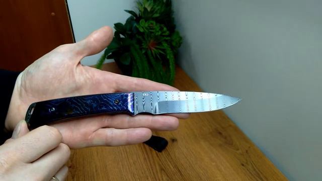 Легкий удобный нож с клинком, имеющим пологие вогнутые линзовидные спуски на две трети ширины клинка, образующие тонкое, прекрасно режущее лезвие толщиной около 0,6 мм в районе подводов. Обух клинка со спинкой рукояти имеет одну плавную дугообразную линию. На пяте перед рукоятью есть подпальцевый вырез для точных работ. Необходимо проявлять некоторую осторожность при работе с большими боковыми нагрузками на лезвие ножа, ввиду небольшой толщины клинка в рабочей части. Монтаж рукояти накладной, неразборный. На навершии рукояти, функцию которого выполняет выступающий из под плашек хвостовик, имеется отверстие под темляк. Этот нож - удобный помощник при работе с продуктами и охоте на боровую и водоплавающую дичь.