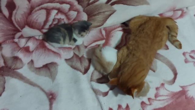 Заботливый кот-отец Кекс играет с приемышами