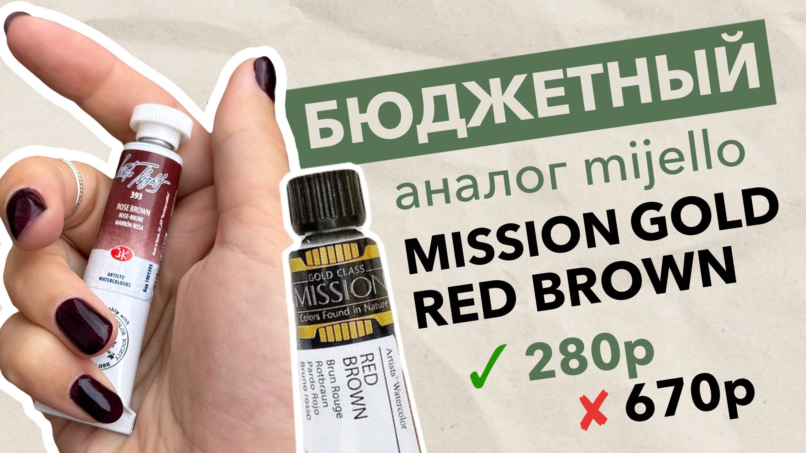 Делюсь бюджетным аналогом корейской краски Mijello Mission Gold Red Brown 🔥 И это «Розово-коричневый» от Невской палитры на том же самом пигменте Br25. Вы можете ознакомиться с нашими продуктами БЕСПЛАТНО: Вебинар «Цвет в теории изобразительности»: https://watermedia.getcourse.ru/colortheory Мастер-класс «Насыщенность цвета: оранжевый и зеленый»: https://watermedia.getcourse.ru/colorsaturation Вебинар «Топ 5 ошибок в тоне»: https://watermedia.getcourse.ru/tonemistakes 📍Аккаунт школы в Instagram: https://www.instagram.com/watermedia.tv 📍ВК Школы: https://vk.com/watermediatv 📍Telegram-канал основателя школы Татьяны Ширбидовой: https://t.me/watermedia_tv 📍Служба заботы: https://t.me/watermediatv