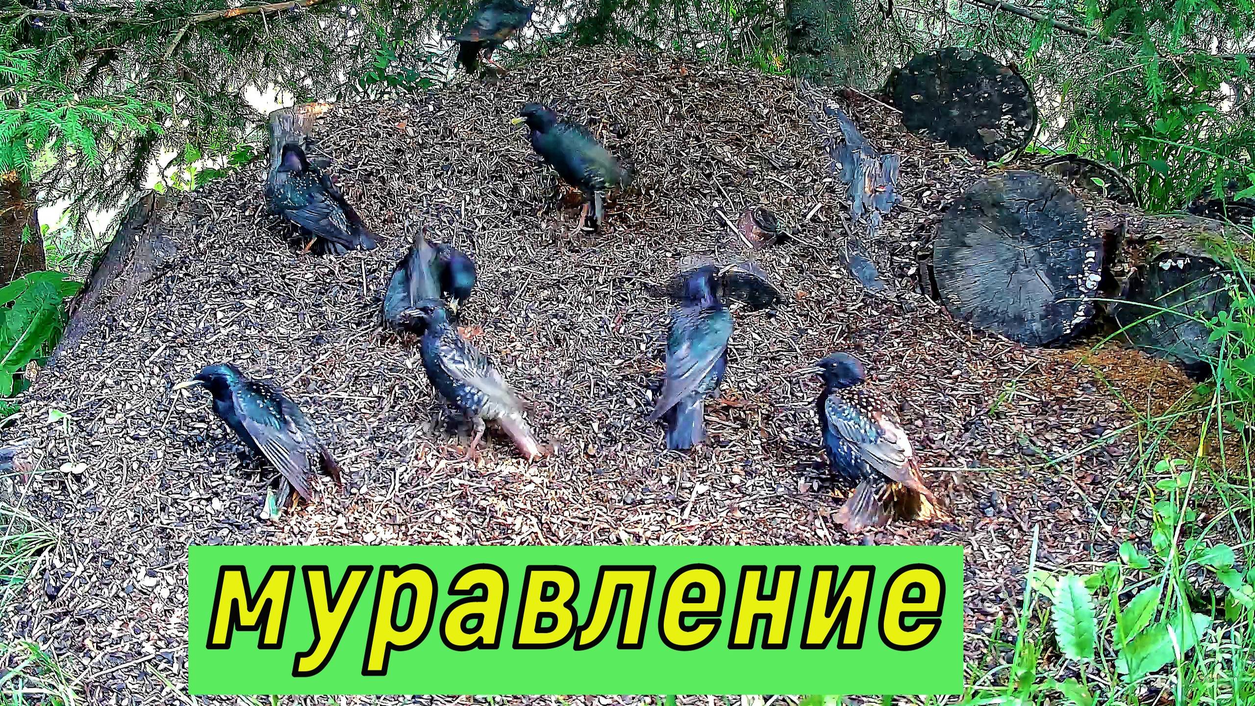 Скворцы принимают муравьиные ванны.