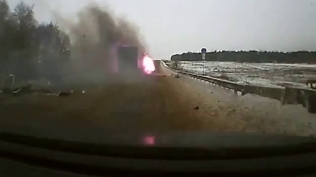 Страшная лобовая авария двух фур