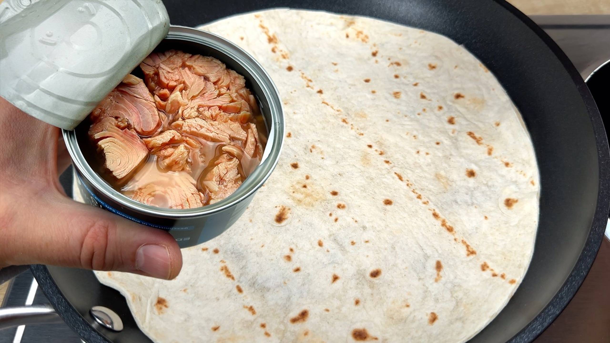 Просто положите консервированный тунец на лепешку! Вкусно, быстро и легко готовится!