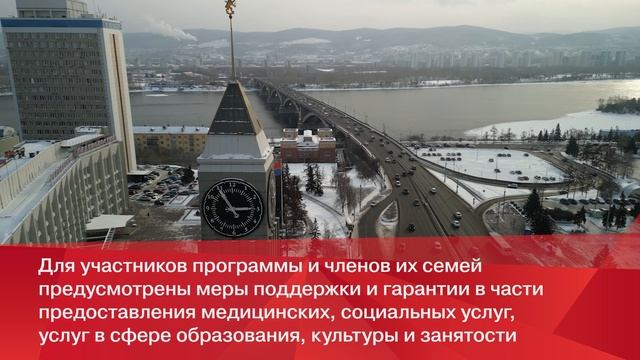 Красноярский край расположен в Центральной и Восточной Сибири, на площади 2 366 797 км² с населением 2 874 050 чел. Является вторым по площади субъектом России и крупнейшим из краёв. Граничит с Республикой Якутией и Иркутской областью на востоке, с Тувой и Хакасией на юге, с Кемеровской, Томской областями, Ханты-Мансийским и Ямало-Ненецким автономными округами на западе. На севере край омывается Карским морем и морем Лаптевых. В крае сосредоточено более 95% российских запасов никеля и платиноидов, более 42% российских запасов свинца, более 20% золота, крупнейшие российские запасы угля, значительные запасы кобальта, нефелиновых руд, магнезитов, исландского шпата, тонких кварцевых песков, тугоплавких глин, графита, 63 вида промышленных металлов и других полезных ископаемых. Благодаря значительным запасам металлических руд, наличию энергетических ресурсов, и доставшейся с советского времени тяжёлой индустрии, край является абсолютным лидером среди регионов России по выработке промышленного продукта на одного жителя. Подпрограммой «Оказание содействия добровольному переселению в соотечественников, проживающих за рубежом», государственной программы Красноярского края «Содействие занятости населения» предусмотрено вселение на территорию региона к концу 2024 года не менее 4 395 участников Государственной программы и членов их семей.