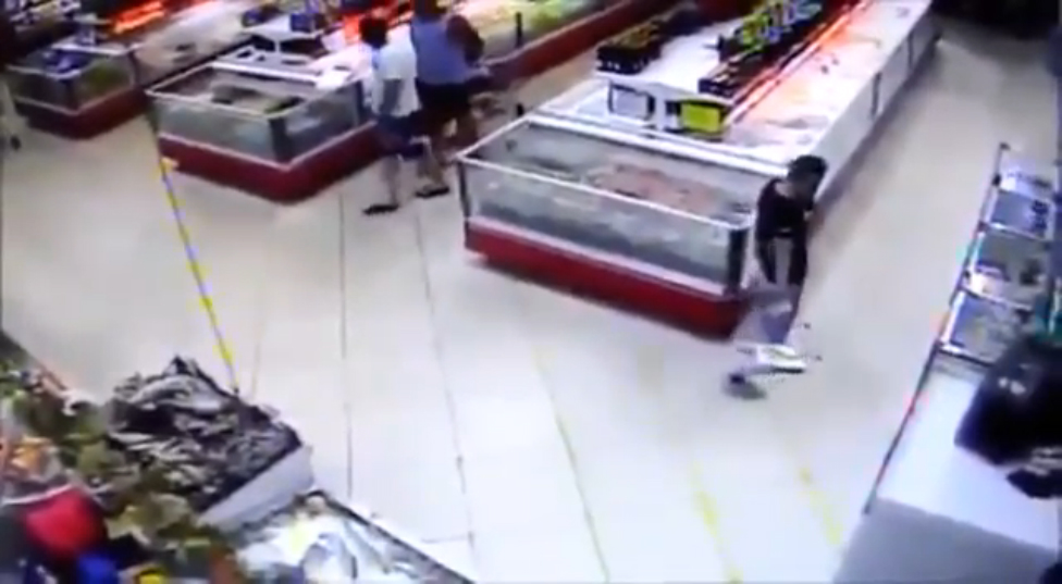 В супермаркете рыба прыгнула в корзину мимо проходящего покупателя. #рыба #магазин #прикол