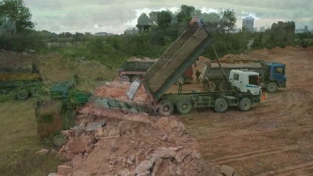 Проект 1: Часть 3 - бульдозер толкает камни, самосвал разгружает камни и грунт.