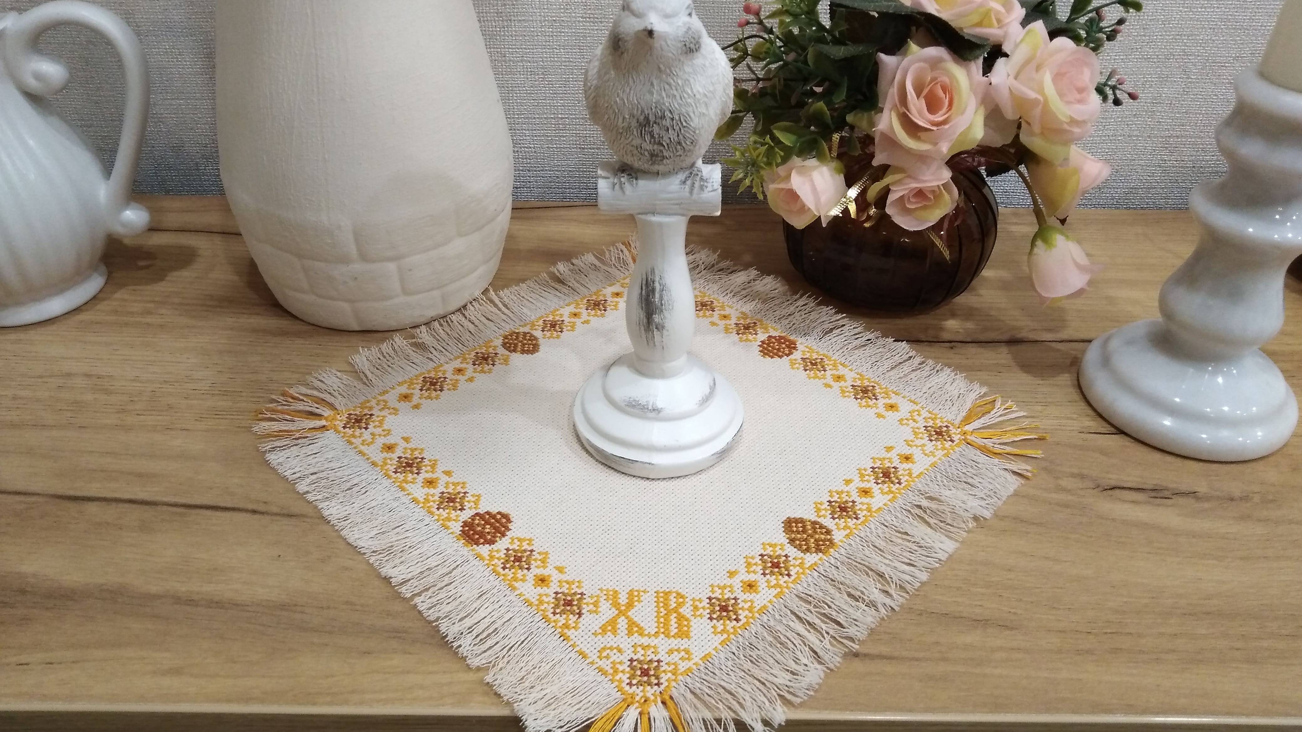Пасхальная салфетка готова, Как оформить бахрому