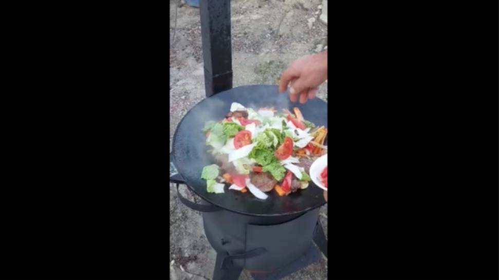 Готовим ужин на новом очаге.