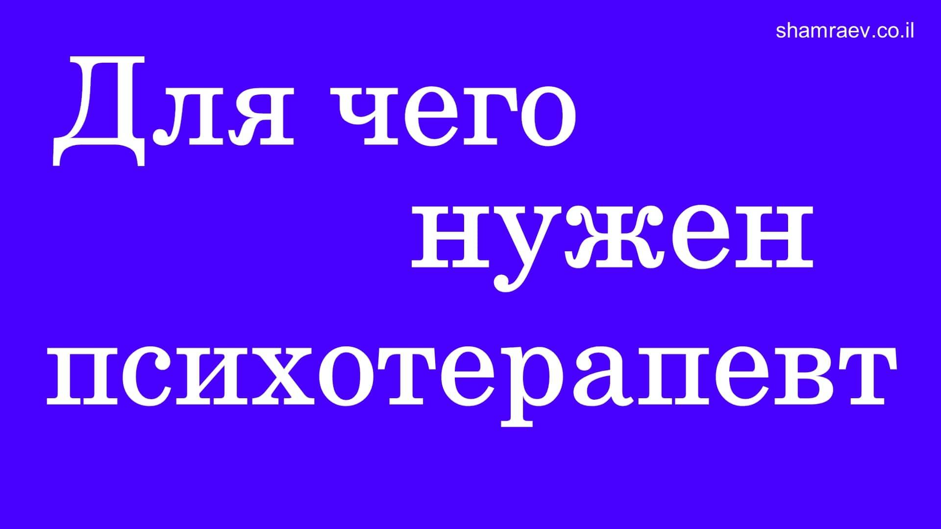 Для чего нужен психотерапевт (2023) Дополнительную информацию можно получить по скайпу: petrshamraev с 8:00 до 22:00 (время московское) Руководитель Психотерапевтического Исследовательского Центра автор открытия в области медицины психолог-психотерапевт Петр Шамраев Тел: +972-52-529-95-91 Тел: +972-52-634-67-74 WhatsApp: +972526346774 Skype: petrshamraev E-mail: petrshamraev@gmail.com Web: http://shamraev.co.il YouTube: https://www.youtube.com/channel/UCBsxIQzzHaDglyTg7J6Bl1A YouTube: https://www.youtube.com/@user-tb6ej6ol2b/videos RuTube: https://rutube.ru/channel/10134425/videos/ Одноклассники: https://ok.ru/kakvylech Вконтакте: https://vk.com/id342874893 Dzen.ru: https://dzen.ru/id/60c06e755fe9c068e6ba4b1d Vimeo: https://vimeo.com/user183147794 Livejournal: https://petrshamraev.livejournal.com/ TikTok: https://www.tiktok.com/@petrshamraev?lang=ru-RU Подпишитесь на мой канал, и вы всегда будете в курсе последних открытий