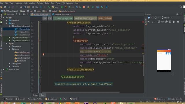 Android Daily Shopping List App Using Firebase (1 Design Recycler And Home Layout Part 6)