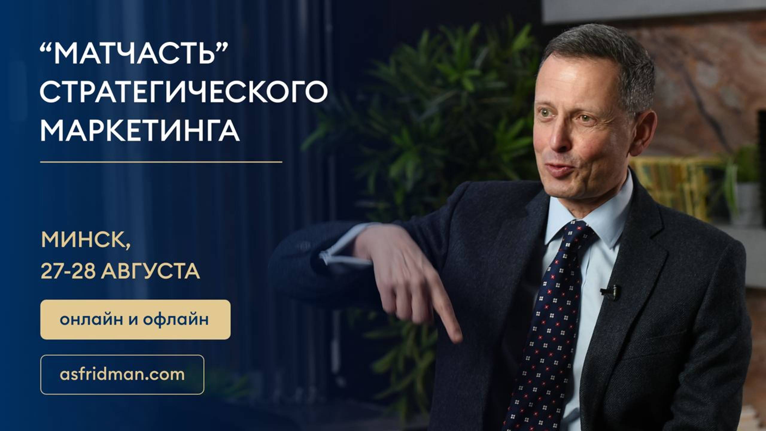 "МАТЧАСТЬ" СТРАТЕГИЧЕСКОГО МАРКЕТИНГА: Как обеспечить гибкое конкурентное преимущество компании на рынке. Семинар Александра Фридмана в Минске, 27-28 августа 2024 года. Подробности и регистрация: https://fridman-minsk.foxhunt.by/king-program