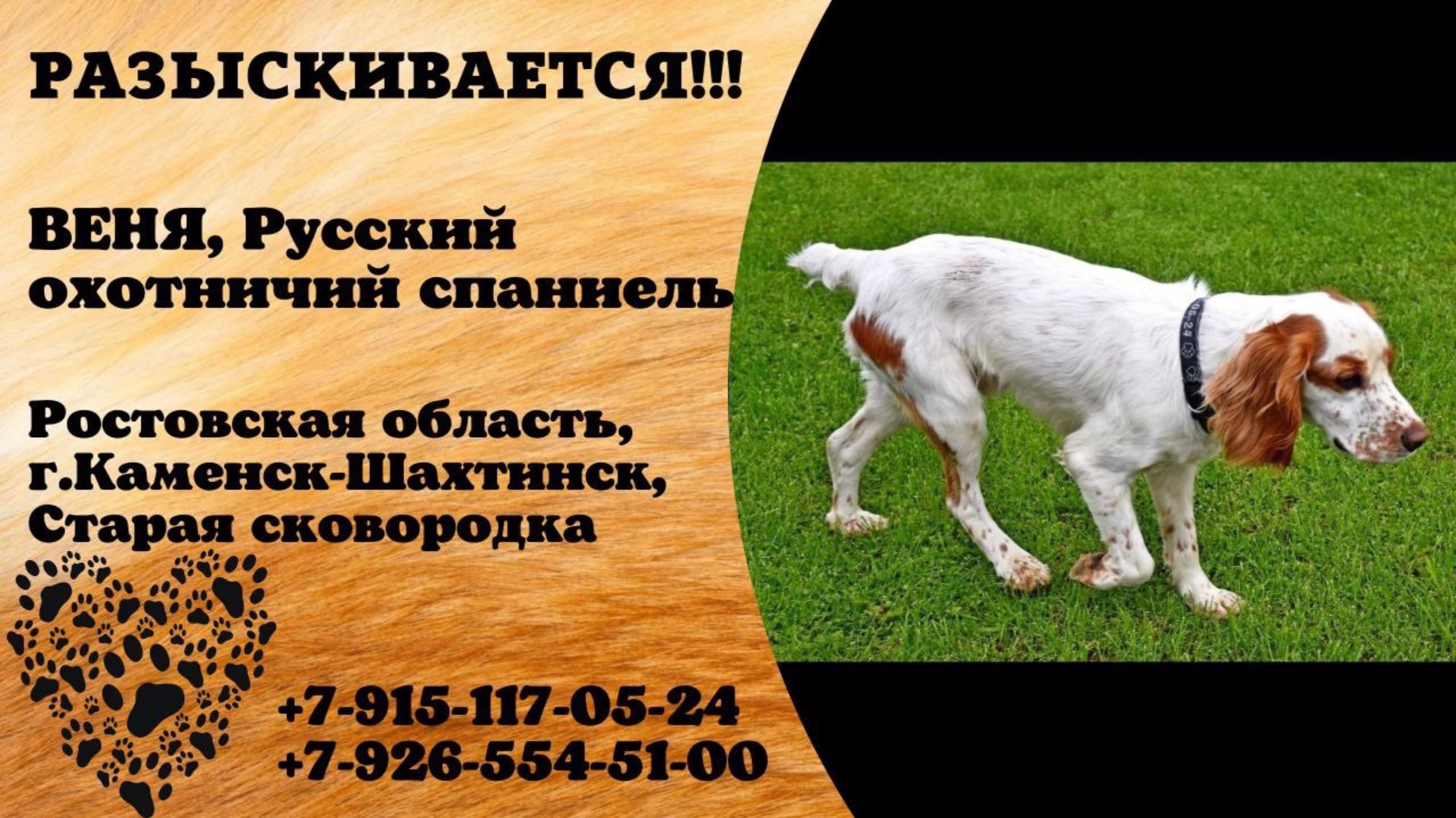Пропала собака! ВЕНЯ, Русский охотничий спаниель. Ростовская область, г.Каменск-Шахтинск.