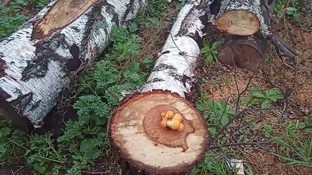Грибы пошли! Даже на липовых пеньках за одну ночь выросли грибы!