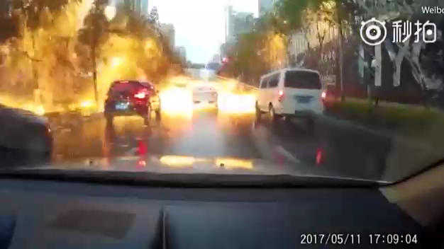 Видеорегистратор запечатлел страшный момент, на улице ударила молния, искры падают сверху.