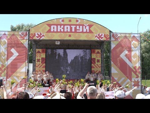Чăвашсен ĕлĕк авалтан, аслисенчен çамрăк ăрăва куçса пыракан тĕп уявĕсенчен пĕри — Акатуй. Ăна кашни ялтах, кашни районтах, йăхташсем пурăнакан кашни тăрăхрах йĕркелеççĕ. Пĕтĕм çĕршыв шайĕнчи Акатуй вара Республика кунĕнче чăвашсен шĕкĕр хулинче Шупашкарта 10-мĕш хут иртрĕ. МАРИНА ДЕМЬЯНОВА: «Чăваш халăхĕ вăл пĕтĕм ака-суха ĕçĕсене вĕçленĕ хыççăн юрлать-ташлать, савăнать. Эпир те паян çакăнта килсе хамăра кăтартма шутларăмăр». АНТОНИНА ВАСИЛЬЕВА: «Çак аслă уява килсе çитрĕмĕр. Питĕ савăнăçлă кунта паян. Пур çĕрте те уяв паллисем сисĕнеççĕ. Эпир хамăрăн коллективпа Етĕрне районĕнчи Изамбаева культура çумĕнчи «Пилеш» халăх фольклор ушкăнĕпе кунта. Ачана ят панă йăла-йĕркене кăтартапăр паян. Пирĕн ачи те сăпки те пур питĕ савăнăçлĕ пурте хăнисем те, артистсем те. Эпир хамăр та савăк-кăмăлпа килсе çиртрĕмĕр çакăнта». Ĕлĕхи йăла-йĕркене упраса халăх умне «шур сухалсем» тухаççĕ. Авалхи уявăн тĕп шухăшне аса илтерсе Аслă Турăран, пӳлĕхçĕрен акнă тырпул тухăçлă пултăр тесе пил ыйтаççĕ. Акатуй кĕрекине пухăниччен çурхи ĕçре пиçĕхмелле. Пилĕк авса ĕçленĕ хастарсене халăх умĕнче чысларĕç, асăнмалăх парнесемпе хавхалантарчĕç. Тутарстан, Пушкăрт, Коми республикисем, Мускав, Чулхула, Питĕр хулисем. Чăвашсем тĕпленнĕ кашни тăрăхран тенĕ пекех килсе çитнĕ хăнасем, пултарулăх ушкăнĕсем. ЕЛЕНА БЕЛОВА: «Акатуй уявне çакăнта Тольятти хулинчен çитрĕмĕр. Ĕçсем пахча-çимĕçсене пĕтертĕмĕр. Халĕ ĕнтĕ выляма, кулма, ташлама-юрлама юрать. Пĕрле савăнма килтĕмĕр. Кашни çулах йыхăраççĕ. Кашни çулах килетпĕр. Савăнсах килетпĕр». ЛАРИСА ТУМАШКОВА : «Чăваша питĕ килес килет. Кашни çулах эпир килетпĕр. Кашни çулах çемьесемпе кунта канатпăр. Вăй илетпĕр çакăнта чăвашр». ТАТЬЯНА ИЛЬИНА : «Эпир Питĕрти чăвашсен «Парне» фольклор ушкăнĕпе килтĕмĕр. Парне ушкăн пĕрремĕш çул çак ака уявне хутшăнать. Питĕ çак уява кĕтсе илтĕмĕр эпир. Питĕ кăмăллă. Çынсен тумĕсене пăхсах эпир паллама пултаратпăр хăш районтан, хăш хуларан килнине. Çавăнпа та эпир çак уява питĕ хаклатпăр. Пысăк хакпа». Акатуйра кашни ял тăрăхĕ хăй картишне хатĕрленĕ. Пĕрисем аваллăха асра тытнине тĕпе хунă, теприсем вара паян пурăнакан ал ăстисемпе мăнаçланнине палăртнă. ЕЛИЗАВЕТА ЦВЕТКОВА: «Чăвашсен кăтартмалли, мухтанмалли чылай. Акă сăмахран пĕчĕккисене тăван чĕлхене вĕрентес тесе чăвашла калаçакан пукансем хатĕрленĕ. Эпĕ салампи, эпĕ шутлама пĕлетĕп. Атя шутлар, Пĕрре пĕрне. Иккĕ икерчĕ, виççĕ». Илемлĕ чăваш чĕлхи кунĕпе янăрарĕ уявра. Тăван юрă-ташă тыткăнларĕ, хавхалантарчĕ паянхи уяв лапамне килнисене те, кунта пурăнакан ытти пин-пин чăваша та» .