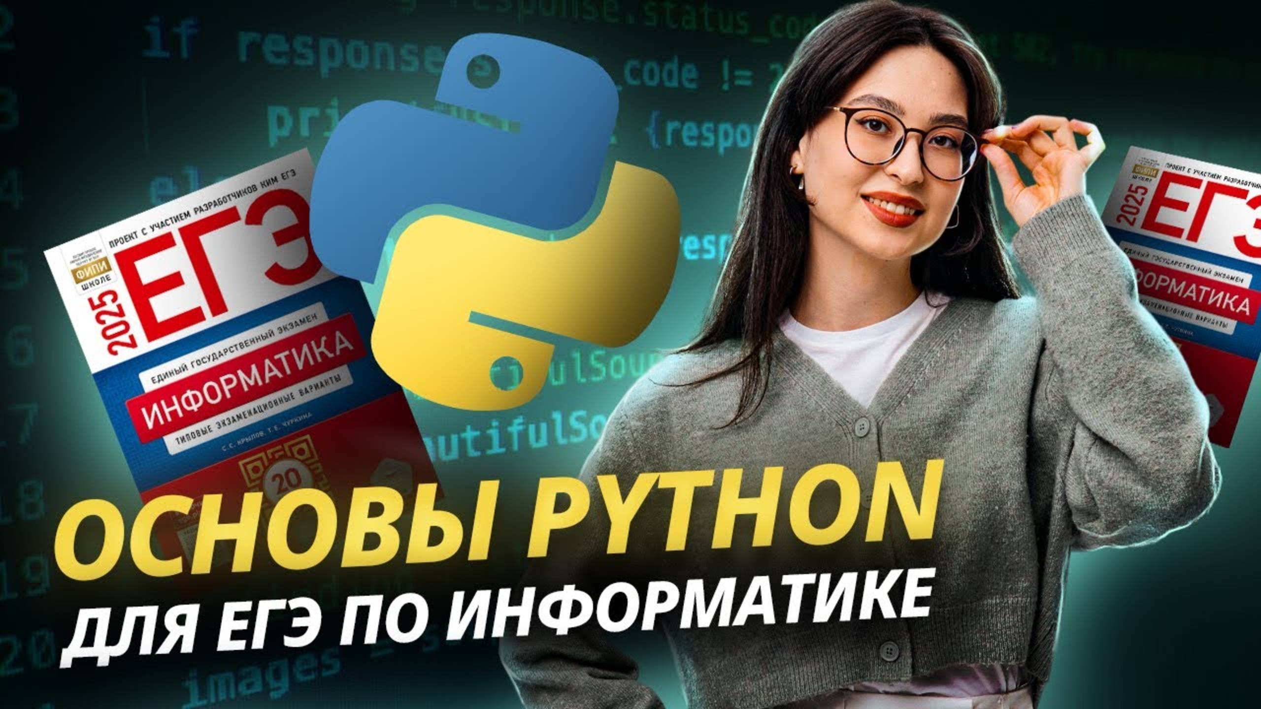 👉 Забирай мой бесплатный гайд «Все конструкции Python для ЕГЭ» для подготовки к ЕГЭ по информатике из закрепа в телеграм-канале: https://short.umschool.net/rt_tgvibe Я Софья Вайб, готовлю 10-классников к ЕГЭ по информатике в онлайн-школе «Умскул». Научу тебя понимать и любить информатику, а не просто решать задачи и зубрить шаблоны! Мои ученики пишут на 70+ пробники ЕГЭ к концу 10-го класса и идут за сотками в 11-й. 🍓 Готовься к ЕГЭ вместе с Умскул уже сейчас, чтобы точно сдать на максимум. Переходи по ссылке, чтобы записаться или задать вопрос: https://short.umschool.net/CHSV Мы составим для тебя персональный трек обучения по 4 предметам так, что ты не выгоришь, и поможем поступить в вуз, о котором ты мечтаешь! С нашими преподавателями ты точно поймёшь и полюбишь предмет и узнаешь обо всех подводных камнях экзаменов. Немного об Умскул: — Каждый 10-й стобалльник России в 2024 году готовился в Умскул. — Подготовили 4 000+ стобалльников. — 41 000+ наших учеников сдали ЕГЭ на 90+. — За 8 лет подготовили 500 000+ учеников к ЕГЭ и ОГЭ. ❗ Если ты в 11-м классе, тебе поможет моя коллега Виктория Ланская — она готовит 11-классников к ЕГЭ: https://short.umschool.net/tglanskaya-ext 🔔 Подписывайся на канал, ставь лайк и жми на колокольчик, чтобы не пропустить новые видео! 0:00:00 — Начало, общение с чатом 0:01:53 — Приветствие 0:04:29 — Расписание стрима 0:08:10 — Почему мы изучаем именно Python? 0:09:57 — Как скачать PyCharm? 0:11:05 — Online-компилятор Python 0:11:53 — Основы синтаксиса Python 0:12:47 — Переменная 0:17:56 — Пример кода на Python 0:21:59 — Типы данных 0:30:32 — Основные операторы 0:41:31 — Сокращенная форма записи математических операторов 0:45:45 — Полезные встроенные функции 0:52:17 — Условия в программировании 0:53:22 — Ветвление 0:54:29 — Логическое выражение 0:55:14 — Обозначение значений логических выражений 0:55:51 — Операторы сравнения 0:57:15 — Практика 0:58:47 — Оператор включения/невключения 1:00:46 — Логическое НЕ - not 1:01:01 — Логическое И - and 1:01:40 — Логическое ИЛИ - or 1:02:08 — Следование 1:02:42 — Тождество 1:02:50 — Приоритет логических операций 1:03:15 — Практика 1:08:13 — Перерыв 1:16:34 — Как выглядит ветвление в Python 1:18:54 — Табуляция 1:23:35 — Каскадное ветвление 1:29:47 — Практика 1:38:32 — Циклы 1:39:32 — Цикл с предусловием 1:45:45 — Цикл с постусловием 1:49:01 — Разница между циклами for и while 1:50:48 — Расширенный функционал range() 1:53:23 — Практика 2:00:21 — Перерыв 2:08:13 — Строки 2:08:41 — Списки 2:09:24 — Арифметические операции над списками и строками 2:11:27 — Индексы 2:14:35 — Строки 2:14:56 — Срезы 2:16:20 — Практика 2:19:05 — Строковые функции и методы 2:22:48 — Функции и методы списков 2:24:52 — Перебор элементов списка 2:26:01 — Подсчет суммы 2:26:33 — Подсчет количества 2:26:42 — Подсчет максимума 2:26:55 — Считывание данных из файла 2:28:40 — Считывание данных из файла в список 2:30:27 — Практика 2:34:48 — Что такое функция 2:39:10 — Команда return 2:40:14 — Рекурсивная функция 2:42:34 — Перерыв 2:49:46 — Практика: задание №16 из КИМ ЕГЭ 2:55:01 — Практика: задание №12 из КИМ ЕГЭ 3:03:50 — Практика: задание №2 из КИМ ЕГЭ 3:11:52 — Практика: задание №17 из КИМ ЕГЭ 3:14:10 — Расписание основного курса на ноябрь 3:15:38 — Расписание курса на год 3:16:18 — Кодовое слово для получения скидки 3:20:28 — Завершение стрима #умскул #егэ #информатика