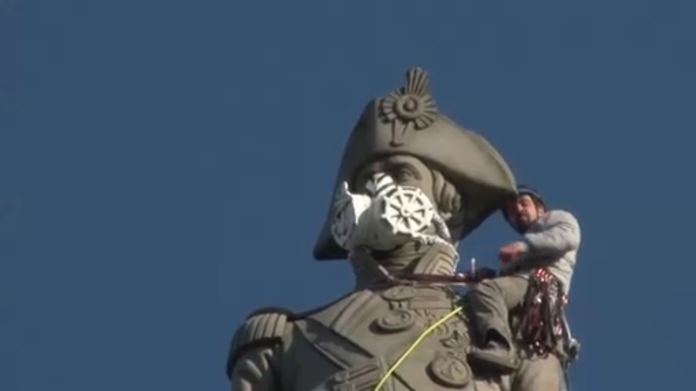 Великобритания. Маски на памятниках от Гринпис (18.04.2016 г.)
