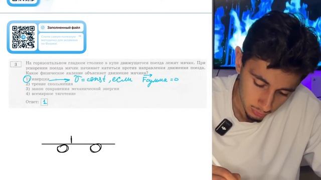 На горизонтальном гладком столике в купе движущегося поезда лежит мячик. При ускорении - №20399