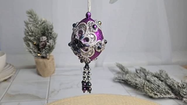 Ёлочное украшение ВОСТОЧНЫЕ ЧАРЫ - ЯЙЦО, пластик, текстиль, стразы, бусины, 11 см, S4414-2