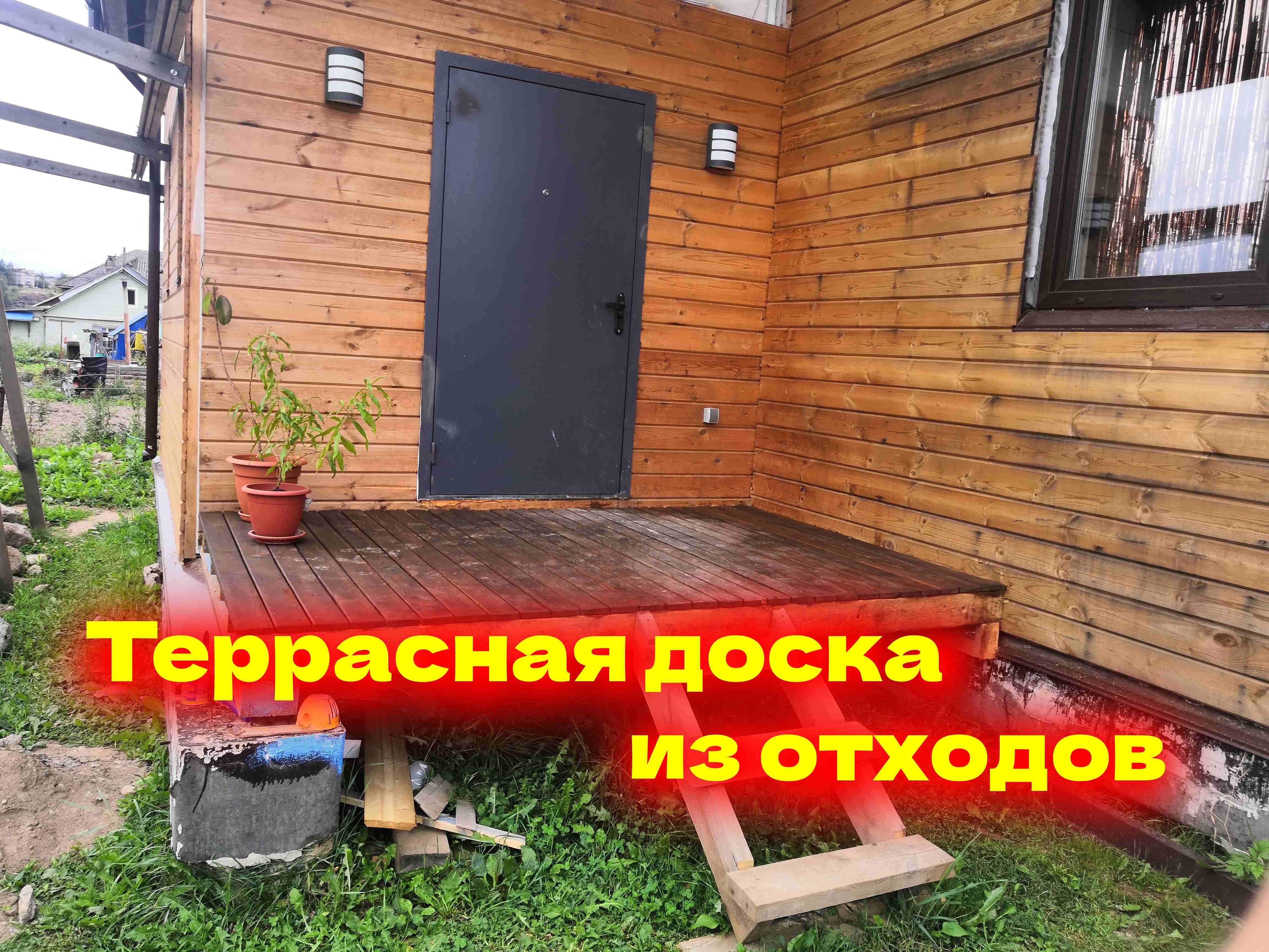 Получилась не большая терраса из старой доски.