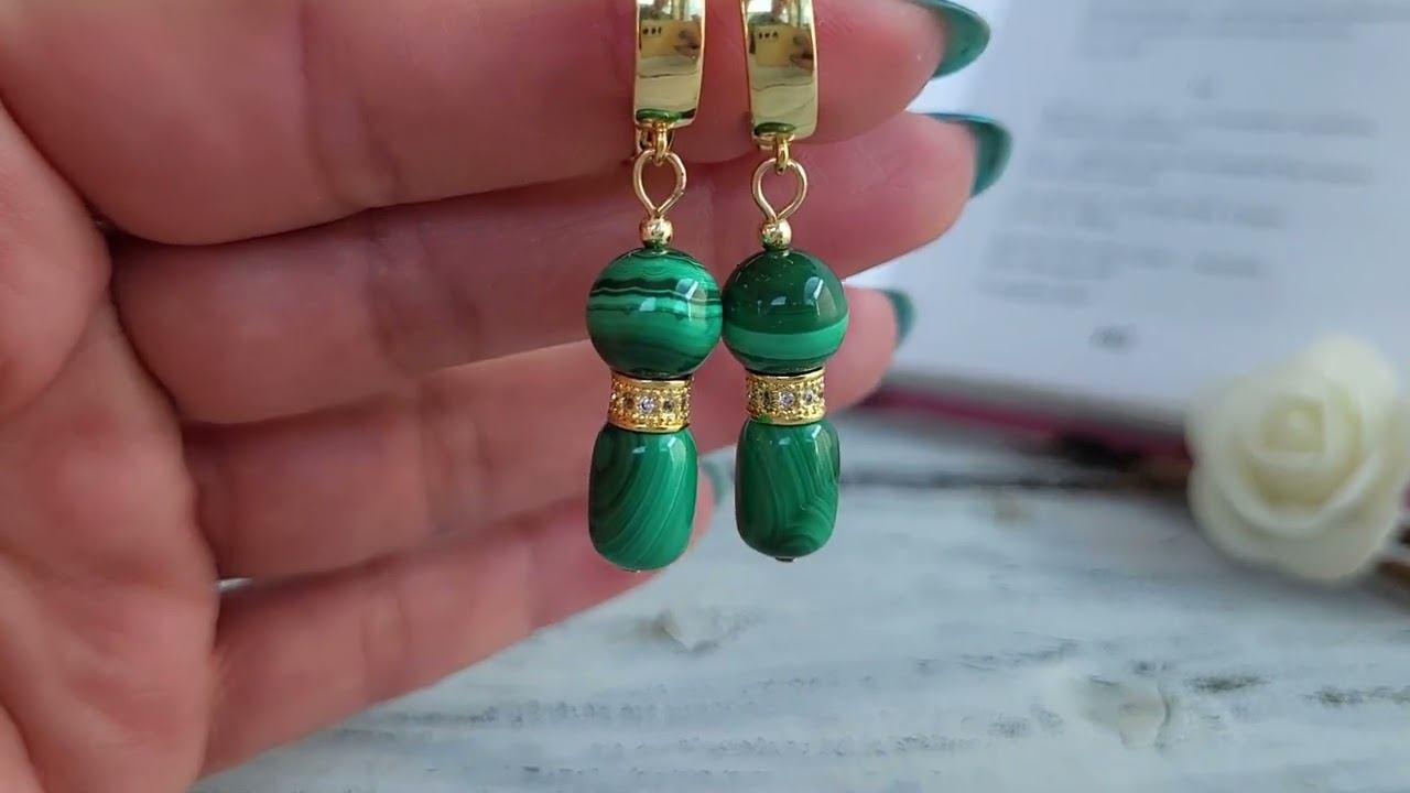 Серьги украшения из натуральных камней. Серьги из малахита с фурнитурой: малахит боченок 8х12 мм., шарик 10 мм., фурнитура люкс покрытие золото 14 к., вставка фианиты, длина до швензы 35 мм., швензы покрытие золото 14 к., вес пары 12 гр. купить украшения можно в нашем магазине https://www.livemaster.ru/samotsvety-ot-granat-mk?view=profile