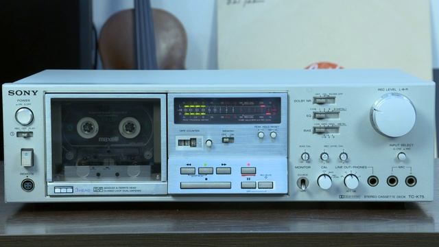 SONY TC-K75 ¥94,800(1980年頃) три аудио головки, сквозной канал. ソニー技術の集大成機として、独立3ヘッドでクローズドループ・デュアルキャプスタン採用のカセットデッキ。 独立3ヘッド方式により、音質の向上とともに録音同時モニターも可能にしています。 録音/再生ヘッドにはそれぞれS&Fヘッドを採用しています。 テープ走行の安定化を図るため、クローズドループ・デュアルキャプスタン方式を採用しています。 モーターには、BSLグリーンモーターとハイトルクモーターを用いた2モーター構成を採用しています。 テープに合わせたバイアス調整や感度調整が厳密に行えるBIAS CAL、REC CALを搭載しています。 ピークホールドとリアルタイムのレベル表示を同時に行う多機能ピークプログラムメーターを搭載しています。 ロジカルコントロールを採用しています。 オートスペース付きRec Mute機能を搭載しています。 バイアス/イコライザー独立の4段テープセレクターを搭載しています。 オートプレイ/メモリープレイ機能を搭載しています。 ドルビー回路を一つのICに凝縮し、録再の切替えスイッチの排除や部品点数の減少によって特性のバラツキを抑えたドルビーNR コンプリートICを採用しています。 ヘッドホンレベル兼用のライン出力レベルアッテネーターを搭載しています。 タイマースタンバイスイッチを搭載しています。 2系統ラインスイッチを搭載しています。 別売りのワイヤレスリモコンやワイヤードリモコン、シンクロプレイが楽しめるリモートコントロールユニットに対応しています。 Кульминация технологий Sony - кассетная дека с тремя независимыми головками и двойным кабелем с замкнутым контуром. Независимая система с тремя головками улучшает качество звука и обеспечивает одновременный мониторинг записи. Головка S&F принимается как головка звукозаписи / воспроизведения соответственно. Двойная кабельная система с замкнутым контуром используется для стабилизации движения ленты. Композиция двух двигателей, которая использовала зеленый двигатель BSL и двигатель с высоким крутящим моментом, принимается как двигатель. Функцию Rec Mute с автоматическим пробелом несут. Селектор ленты с 4 этапами независимого смещения / выравнивателя несут. Функцию автоматического воспроизведения / воспроизведения памяти несут. Полная IC Dolby NR, которая сконденсировала схему Dolby в одну IC и подавила изменение характеристики, устраняя переключатель переключения записи и воспроизведения и уменьшая количество частей, принимается. Аттенюатор уровня линейного выхода, который также служит уровнем наушников, несут. Переключатель режима ожидания таймера несут. 2 системных линейных переключателя несут. Он совместим с отдельно продаваемым беспроводным пультом дистанционного управления, проводным пультом дистанционного управления и пультом дистанционного управления, что позволяет вам наслаждаться синхронным воспроизведением. Несут BIAS CAL и REC CAL, которые могут выполнить регулировку смещения и регулировку чувствительности строго в соответствии с лентой. Многофункциональный измеритель пиковой программы, который выполняет удержание пика и отображение уровня в реальном времени одновременно, несут. Использует логический контроль. 型式 カセットデッキ ヘッド 消去:1 録音:1 再生:1 モーター BSLグリーンモーター ハイトルクモーター SN比 60dB(ドルビーoff、ピークレベル、メタルカセット) 周波数特性 20Hz~20kHz(メタルカセット) ワウ・フラッター 0.04%wrms 歪率 0.8%(メタルカセット) 消費電力 18W 外形寸法 幅430x高さ130x奥行290mm 重量 6.3kg 付属 ワイヤレスリモコン RM-80(¥18,000) ワイヤードリモコン RM-50(¥6,000) シンクロリモコンユニット RM-65(¥3,000)