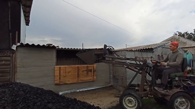 В нашей деревне до сих пор нет газа и в ближайшие годы его не предвидится. Поэтому все жители топят дома углём. Купили себе на зиму 4 тонны хорошего угля. Будем грузить его в углярку самодельным мини погрузчиком.