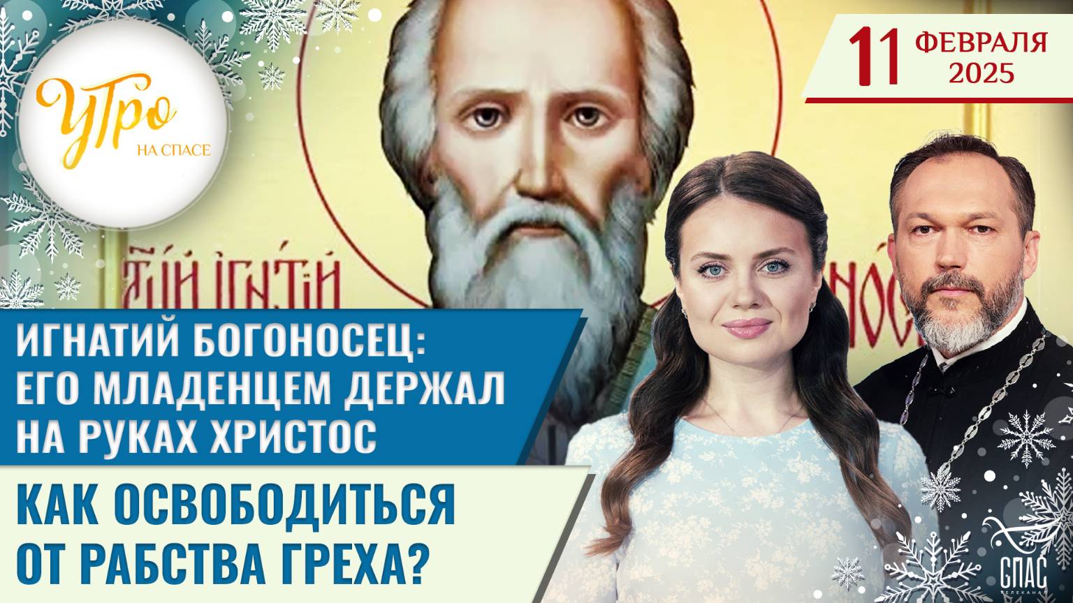 🕊Доброе утро! Сегодня 11 февраля, вторник. Церковь чтит память Священномученика Игнатия Богоносца, епископа Антиохийского. В эфире УТРО на СПАСЕ! С Богом в новый день! 🔸"Где разделение и гнев, там Бог не обитает. Впрочем, всем кающимся Господь прощает, если они возвращаются к единению Божию." - говорил священномученик Игнатий Богоносец. «УТРО на СПАСЕ» просыпается вместе с вами, чтобы наполнить этот день смыслом.