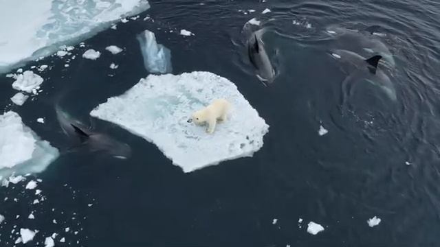 Белый медведь и касатки.