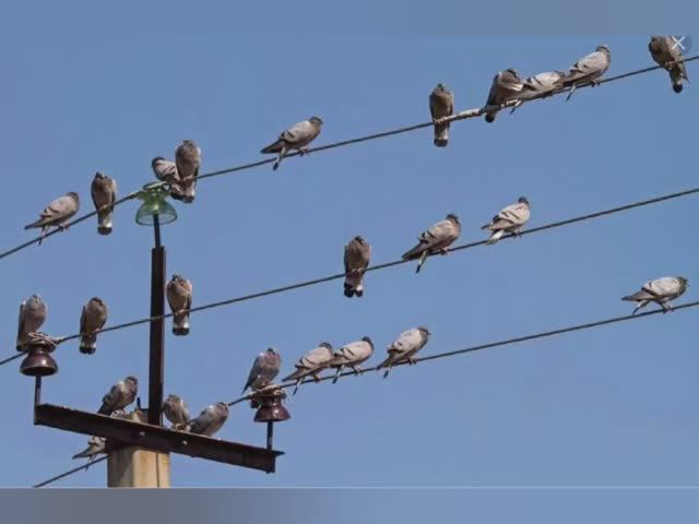 Птицы на электрических проводах.
