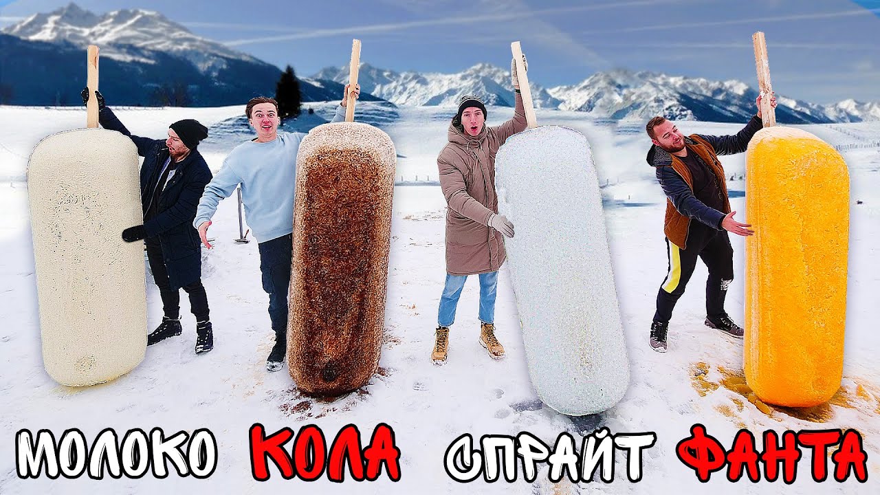Телеграм: https://t.me/himango ВК группа: https://vk.com/hibestman Яндекс ДЗЕН: https://zen.yandex.ru/user/HiBestMan RuTube: https://rutube.ru/channel/24124786/ Мы с командой решили устроить для себя челлендж - сделать гигантское мороженое из колы, фанты, спрайта, молоко. По нашим расчётам, мороженое должно было замёрзнуть через 24 часа, но заледенело только спустя более 50 часов ! На ванны ушло чуть меньше 1000 литров ( суммарно на все напитки ), какой результат вышел - смотрите в ролике. p.s не забудь поставить лайк, если понравился видос =)