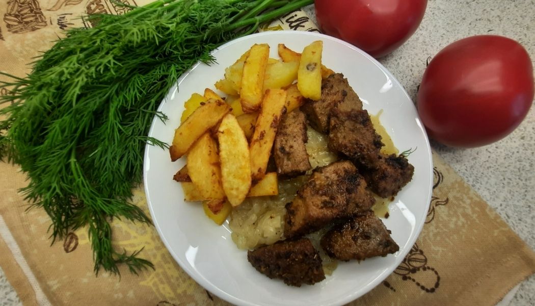 Вкусная и сочная жареная печень маринованная с чабрицом.