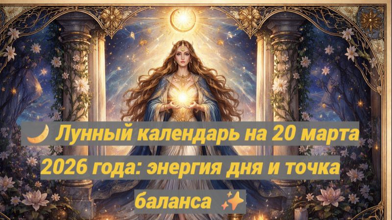 Лунный календарь на 20 марта 2026 года раскрывает энергетику дня, эмоциональный фон и внутренние процессы, связанные с выравниванием и осознанием важных жизненных моментов. 🌙✨ День может ощущаться как переходный, когда особенно важно найти баланс между внутренними желаниями и внешними обстоятельствами. Лунные энергии усиливают чувствительность к знакам, помогают подвести итоги и понять, какие решения требуют пересмотра. 🔮💫 Это благоприятное время для анализа, осознанных разговоров, подведения промежуточных итогов и мягкой корректировки планов. Возможны инсайты или внутренние озарения, которые помогут определить дальнейшее направление движения. Не рекомендуется действовать импульсивно или поддаваться эмоциональным крайностям — спокойствие, честность с собой и внутреннее равновесие принесут наилучший результат. Используй этот день для гармонизации состояния, заботы о себе и настройки на новый этап в ритме Луны. ✨🌙 #лунныйкалендарь #20марта2026 #энергиядня #лунныйдень #луна #лунныеэнергии #астрология #эзотерика #осознанность #интуиция #ритмылуны #гармония #внутреннийбаланс #энергиялуны #календарьдня #духовныйрост #саморазвитие #лунныйпрогноз #деньлуны #настройдня #вдохновение #магиялуны #космическаяэнергия #лунныйритм #эзотерическоевидео #видеопрогноз #энергиявремени #март2026