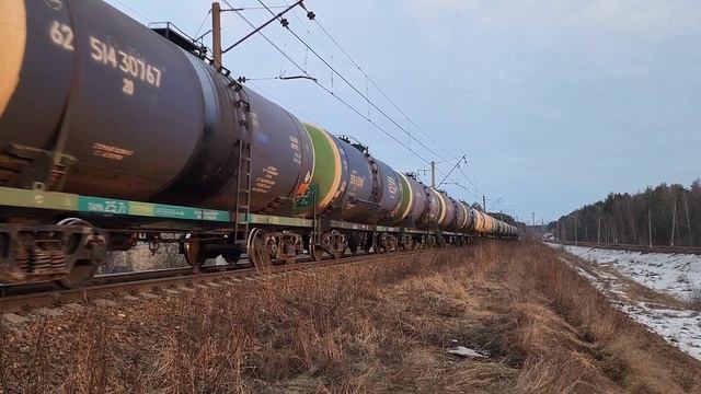 23 марта 2023 года окрестности станции Сандарово БМО Московская железная дорога 0:01 - 2ТЭ116-545 БТС с "бочками" на Сандарово в 18:19 2:51 - 2ТЭ25КМ-0176 резервом из Сандарово в 18:22