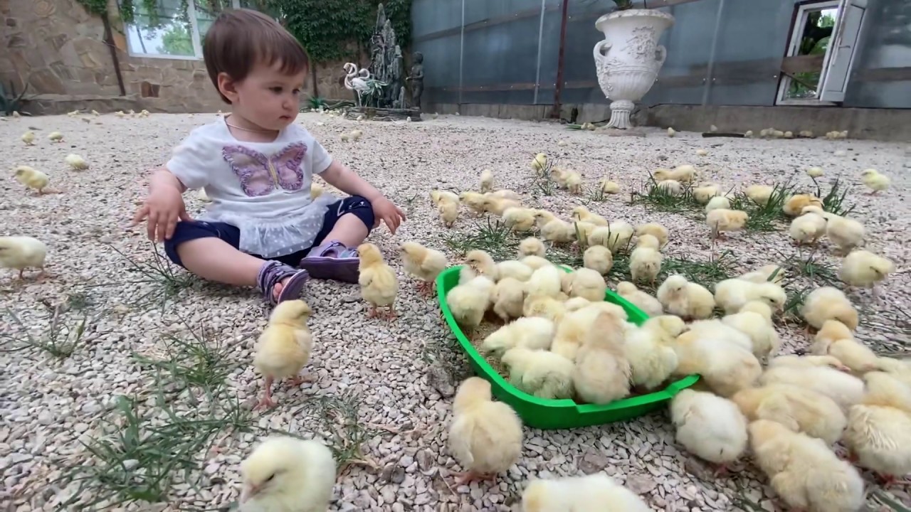 Ангелина и СОТНИ ЦЫПЛЯТ на прогулке !