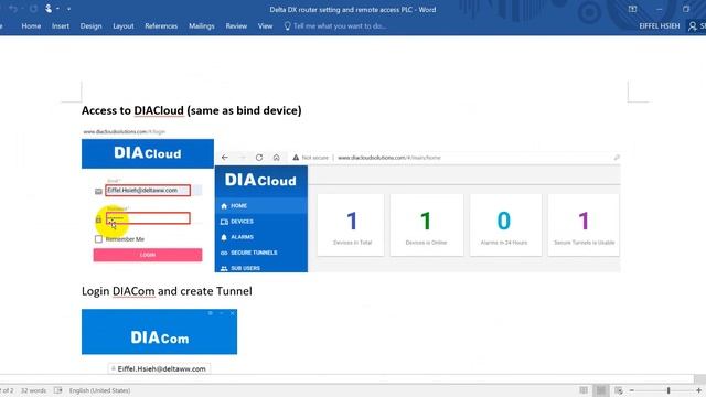 This video will show you how to use DIADevice and DIACom to configure Delta Cloud router. After that, you can use DIACloud function to remote access to PLC for program modification.