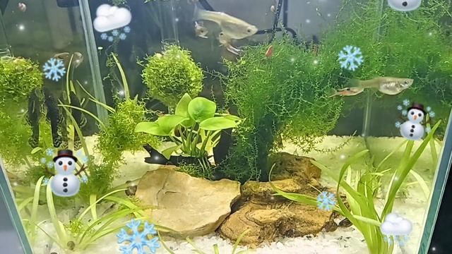 Мини-аквариум спустя неделю. Обитатели освоились.
