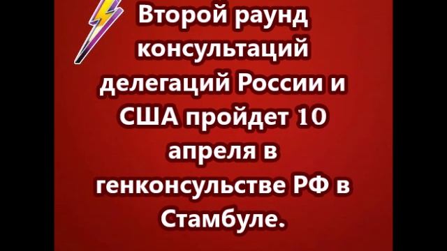 Второй раунд консультаций делегаций России и США пройдет 10 апреля в генконсульстве РФ в Стамбуле.