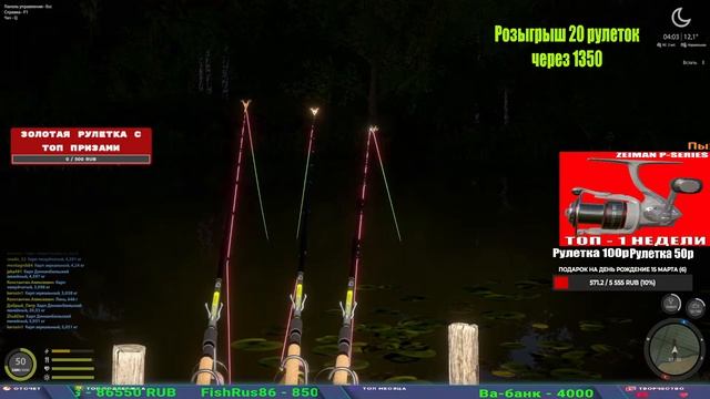 Поддержка донатом https://clk.li/MAnW Альтернативный донат https://www.donationalerts.com/r/kalyamba11 5536913964533059 карта Тинькоф Богомолов Н. Если стрим лагает,смотри стрим на трово https://trovo.live/s/Kalyamba_na_Ribalke Тг https://t.me/kalyamba_na_ribalke НАШ ДС https://discord.gg/yR6kBuTzRS Мой ВК - https://vk.com/kalyantv НИК в игре kalyan11 Оценка вашего аккаунта 111р Заказ водоема на 1 час - 500р ( весь стрим 2500р ) На слабые снасти на море, осетров, карпов ( по вашему желанию ) 777р - 1час Отправить на штрафной пруд 1111р ( заранее договориться ) Модерка на канале 1700р ( каждая следующая на 100р больше) ✅Призы в рулетке "ЗОЛОТАЯ" 500р ✔ ЗОЛОТО 1,2,3,5,10 ✔ ПРЕМ 3,7,30 ✔ КАТУШКИ РАПТОР 40 ✔ ВЕНГА 10000 FINAL ✔ ТАЙГА C40 ✔ Zeiman p 6000 ✔ Overloard 656 ✔Full metal 6000 ✔ Морская Пилкерная sensi 8850190 ✔ Карповики, спининги, фидеры, пикеры ✔ Стул на выбор ✅Призы в рулетке СТАНДАРТ : 100р ✔ КАТУШКИ РАПТОР 40 ✔ ВЕНГА 10000 FINAL ✔ ТАЙГА C40 ✔ Zeiman p 6000 ✔ Overloard 656 ✔Full metal 6000 ✔ прем ( 3, 7, 30 дней) ✔ золото ( 1, 3, 5, 10 ) ✔ билет на море ( 1, 3, 5 дней) ✔ голд наживка и др. ✅Призы в рулетке "СТАРТОВАЯ" 50р ✔ катушка Венга ✔ катушка "silver80" ✔ катушка "БЕЛЫЙ КАЛИБР" ✔ катушка "Черный калибр" ✔ катушка "Протон" ✔ катушка "Нарга 6000" ✔ Набор Фидерист и спинингист ✔ Карповик Фортуна ✔ фидерные удилища ✔ прем, золото, алкашка, наживки и тд P.s Рулетка это не казино, а награда за поддержку стримера. Вечный ТОП ПОДДЕРЖКИ (2.02.2026) 1. Леха сварной 219 800 2. Skreb79 139 969 3. Dimon_pokemonchik 127 034 4. Interceptor 103 730 5. Ярослав 87 200