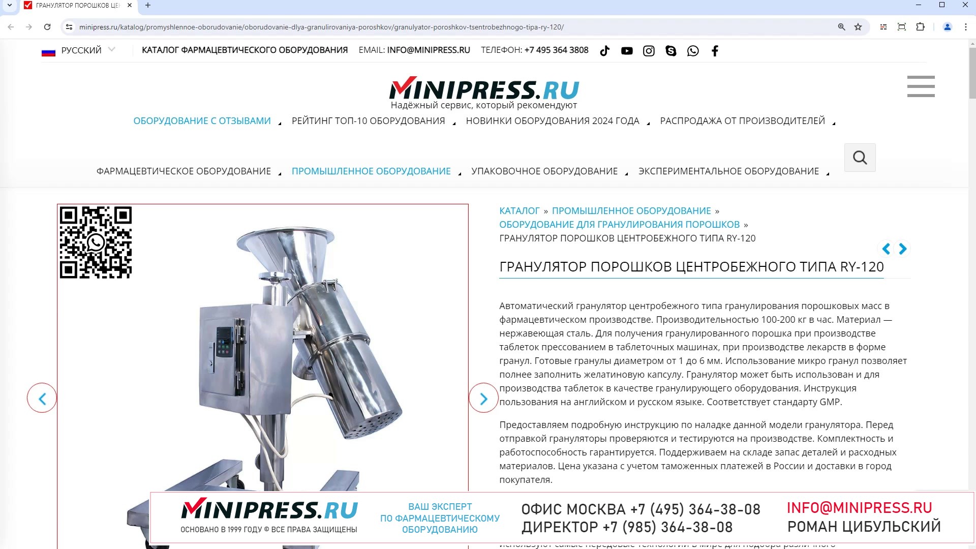 В нашем каталоге большой выбор КАПСУЛЬНЫХ МАШИН И КАПСУЛЯТОРОВ. Если вас интересуют твердые и мягкие желатиновые капсулы, вам нужно в них капсулировать порошки или масла, мы подберем вам лучшие модели капсульного оборудования. В наличии и под заказ настольные ручные капсульные машинки, полуавтоматические капсуляторы, автоматические машины наполнения капсул порошками. Также оборудование для извлечения порошка из закрытых капсул с разделением на две части. Компания Романа Цибульского MINIPRESS.RU занимается поставкой большого ассортимента фармацевтического оборудования из Китая, Кореи, Индии, Европы и других стран. Мы выполняем работы по поиску, подбору, закупке, доставке, и таможенной очистке оборудования с доставкой в любой город России и стран СНГ. Основатель и ведущий специалист компании - Роман Цибульский. Компания MINIPRESS.RU (зарегистрированный товарный знак) основана в 2000 году. Онлайн каталог оборудования MINIPRESS.RU ежедневно посещают несколько тысяч человек. Мы развиваем крупные каналы в социальных сетях, посвященные тематике фармацевтического оборудования. Вы можете посмотреть видео ролики об оборудовании, которым мы занимаемся. Фактически у нас самый большой в России многоязычный каталог фармацевтического оборудования с фотографиями, описаниями, и что более важно с ценами и видео демонстрацией оборудования в работе. Подбор оборудования и консультации ведет сам владелец компании - Роман Цибульский. Компания имеет огромный опыт в работе с различным оборудованием, технологиями. Помогаем клиентам выбрать модель фармацевтического оборудования, которое сможет решить поставленную задачу. Наши специалисты помогают рекомендациями в решении проблем по эксплуатации оборудования. Наша компания имеет офис в г.Шанхай и несколько менеджеров, которые помогают в работе с китайскими поставщиками. Мы долго сотрудничаем и дружим с этими специалистами. Китайские поставщики ценят нас как постоянных партнеров. Роман Цибульский Директор компании Минипресс Поставка фармацевтического оборудования в Россию Пишите: info@minipress.ru Gmail: boss.minipress@gmail.com Офис в Москве +7(495)364-38-08 Мобильный +7(985)364-38-08 (WhatsApp) Каталог оборудования https://www.Minipress.ru/katalog/ МИНИПРЕСС.РУ В СОЦИАЛЬНЫХ СЕТЯХ FB https://facebook.com/roman.tsibulsky YOUTUBE https://www.youtube.com/@farmacevticheskoe_oborudovanie INSTAGRAM https://www.instagram.com/farmacevticheskoe_oborudovanie/ #технологии #эмульгатор #пылесос #обеспыливатель #дойпак #торговля #распыляемость #запайка #стекло #оборудование