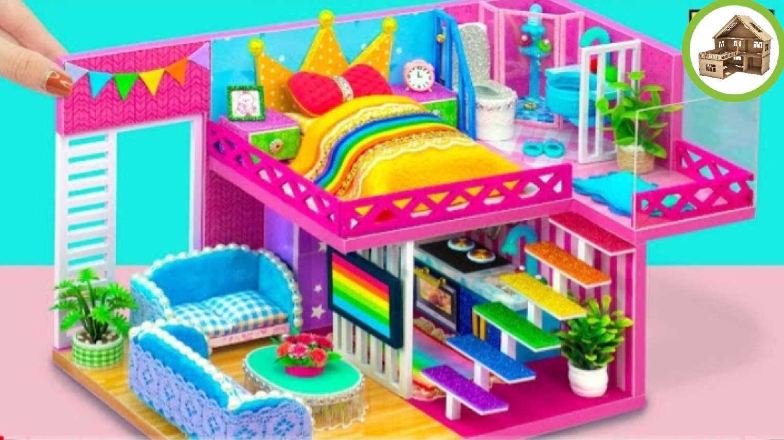 Милый просторный двух этажный миниатюрный домик из картона /164