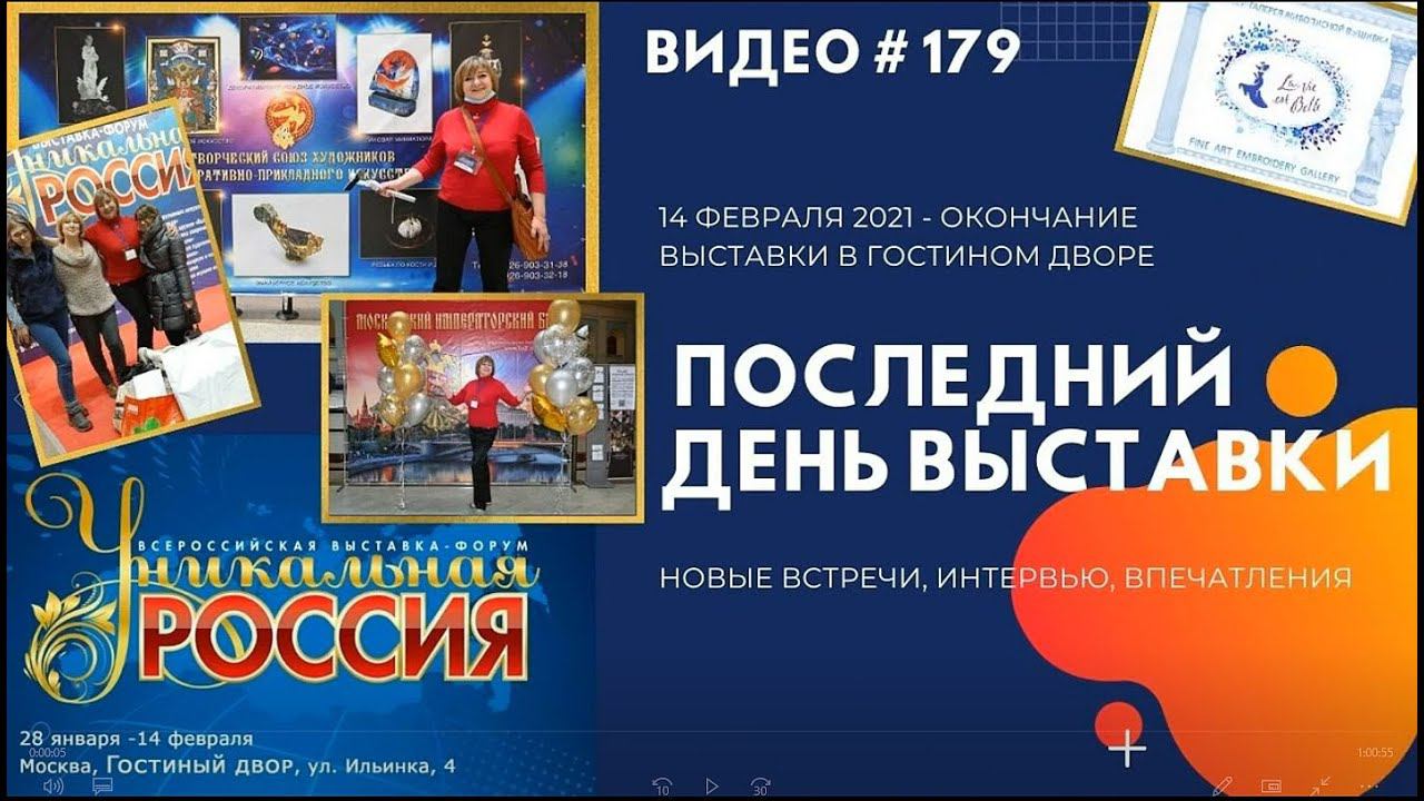 Видео канала Belle. Оригинал видео https://www.youtube.com/watch?v=znxiWJAvn2U Репортаж о последнем, очень насыщенном дне выставки «Уникальная Россия» в Гостином Дворе, новые интервью с мастерами, впечатления организаторов о выставке в целом, и многое-многое другое. ******* 00:00:17 – 14 февраля на пути в Гостиный Двор, общий обзор событий выставки 00:01:15 – впечатления от выставки участниц проекта «Жизнь прекрасна!» АЛЛЫ ШИШКИНОЙ и ГАЛИНЫ ГРЫМОВОЙ 00:02:55 – АННА СОСНИНА, авторские игрушки 00:04:20 – ВЛАДИМИР ПРОНИН, художник-преподаватель (орнаментальный неосимволизм) 00:07:40 – ТАТЬЯНА ГОРИНА, художник-маркетри (мозаика по дереву) 00:12:34 – РОМАН СОБОЛЬ, металл, внутренние ограничения 00:15:22 – ЕВА НИКОНОВА, русские молекулы 00:16:07 – АНЯ ЛЕСНЯК, скульптуры кораблей 00:18:24 – АНДРЕЙ КОРОБЕЙНИКОВ, картины из кожи 00:23:30 – АЛЛА КОЗЛОВА, лаковая миниатюрная живопись 00:27:25 – МАКСИМ СТУЛОВ, эксклюзивные пишущие инструменты и часы фирмы «Артус» 00:28:49 – ВИКТОР ГОЛУБЕВ, карвинг (деревянные скульптуры) 00:30:08 – АНДРЕЙ БРОННИКОВ, художественная фотография 00:32:35 – ЮЛИЯ БАЗАНОВА, художественная резьба по кости 00:35:42 – СЕРГЕЙ КОЛОМИЙЦЕВ, директор Творческого Союза Художников ДПИ 00:37:18 – ВАЛЕРИЙ БОГОМОЛОВ, директор компании «Интеллект Инвест» 00:38:26 – АЛЕКСЕЙ ЦЫЦУЛИН, член Правления Творческого Союза Художников ДПИ 00:44:00 – ЛАРИСА МАХОВА, художник по эмали, Творческий Союз Художников ДПИ 00:47:57 – ГАЛИНА ГРЫМОВА, участница проекта «Жизнь прекрасна!» 00:50:55 – АЛЛА ШИШКИНА, мастер вышивки, участница проекта «Жизнь прекрасна!» 00:51:37 – ЕКАТЕРИНА МУСАТОВА, мастер вышивки, участница проекта «Жизнь прекрасна!» 00:53:01 – СВЕТЛАНА ДИАНОВА, мастер вышивки, автор и участница проекта «Жизнь прекрасна!» 00:55:10 – заключительная часть, благодарности 00:59:16 – анонс нашей следующей выставки в Тургеневской библиотеке (25 февраля – 10 марта) 00:59:38 – видео зарисовки ******* ССЫЛКИ: Художественно-промышленная выставка-форум «Уникальная Россия» https://xn--80aawchhkektmap5kybf.xn--... 28 января - 14 февраля 2021 года Адрес: г. Москва, Гостиный двор, ул. Ильинка д.4. Творческий Союз художников декоративно-прикладного искусства - http://tshdpi.ru/ Частные музеи России - https://privatemuseums.ru/ ПЛЕЙЛИСТ с видео о выставках проекта «Жизнь прекрасна!» - https://www.youtube.com/playlist?list... ПЛЕЙЛИСТ с видео о Музее-галерее живописной вышивки - https://www.youtube.com/playlist?list... ПЛЕЙЛИСТ с YouTube сериалом «Сокровища Lady Belle» - https://www.youtube.com/playlist?list... БЛАГОДАРНОСТИ: - Руководству выставки-форума за приглашение проекта "Жизнь прекрасна!" к участию в первой Всероссийской Художественно-промышленной выставке-форуме «Уникальная Россия» в Гостином Дворе с 28 января по 14 февраля 2021 - Мастерам, гостям и посетителям выставки в Гостином Дворе за талант, интересные рассказы о своем творчестве, отзывы, впечатления и интервью для видео репортажей - Участницам проекта "Жизнь прекрасна!" за участие в проекте, предоставление картин и помощь с организацией и проведением выставки в Гостином Дворе - В данном видео использована музыка из фонотеки YouTube
