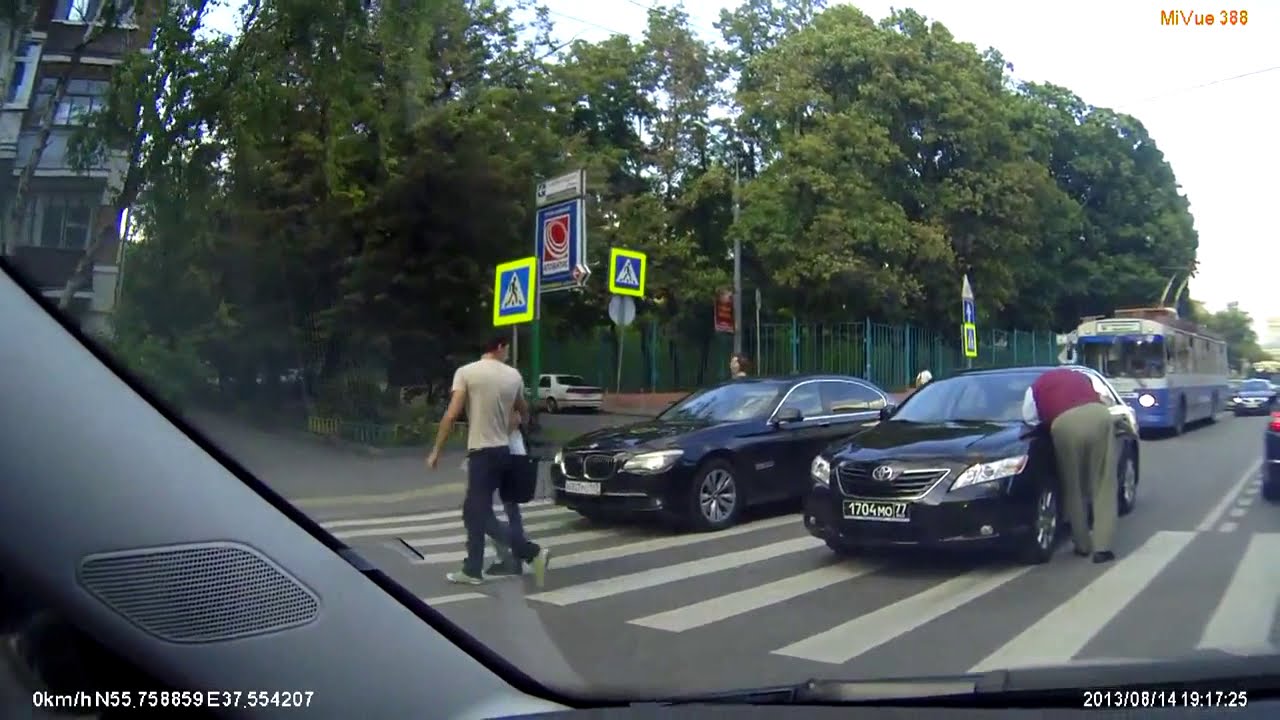 Министр на переходе наехал на пешеходов и получил по морде. Minister to move and hit a pedestrian got in the face.