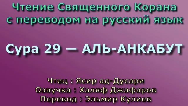 Чтение^Озвучка - Корана Чтец: Ясир ад-Дусари Озвучка: Халяф Джафаров Перевод: Эльмир Кулиев Источник YouTube канал: " Священный Коран "
