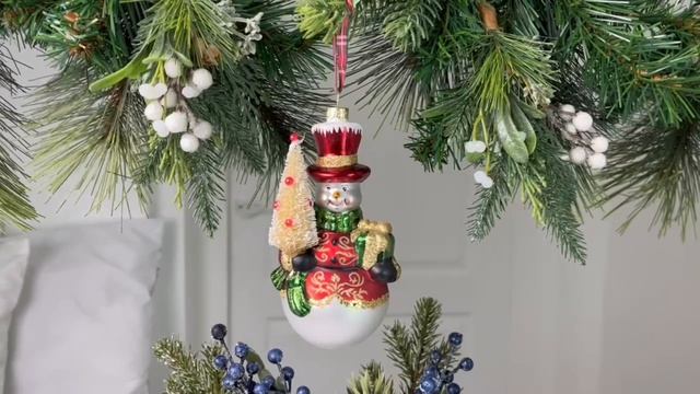 Ёлочная игрушка СНЕГОВИЧОК С ВОЛШЕБНОЙ ЁЛОЧКОЙ, стекло, 15 см, T3349-1