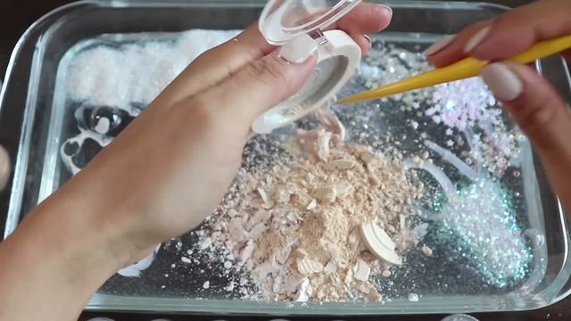 Смешиваем «белые» тени, макияж и блёстки в слайм