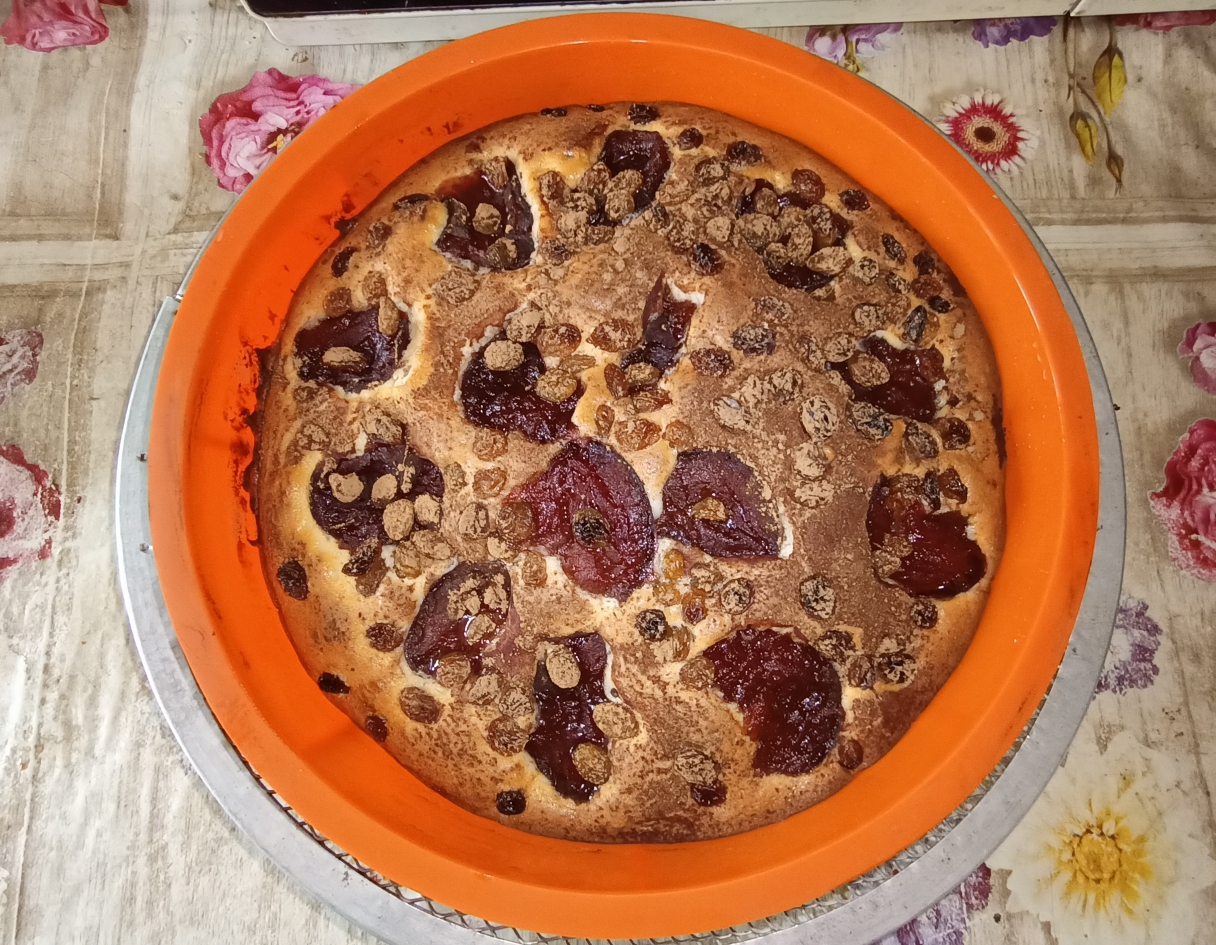 Пирог сливовый с корицей и изюмом. Рецепт выпечки.