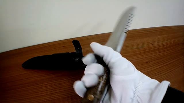 Внушительный нож с серьезным клинком классической формы, с толщиной обуха 6 мм. Долы на голомени клинка придают ему дополнительную жесткость. Пила по обуху клинка может быть использована для надпилки рогов и костей. Спуски образуют тонкое, хорошо режущее лезвие. Рукоять большая, удобной для рубки формы, имеет на навершии отверстие для темляка. Монтаж рукояти накладной, неразборный. Этот нож придется по вкусу любителям охоты, труднопроходимых дорог и экстремального туризма, он хорош при обустройстве стоянки или для рубки веток под колеса застрявшей машины.